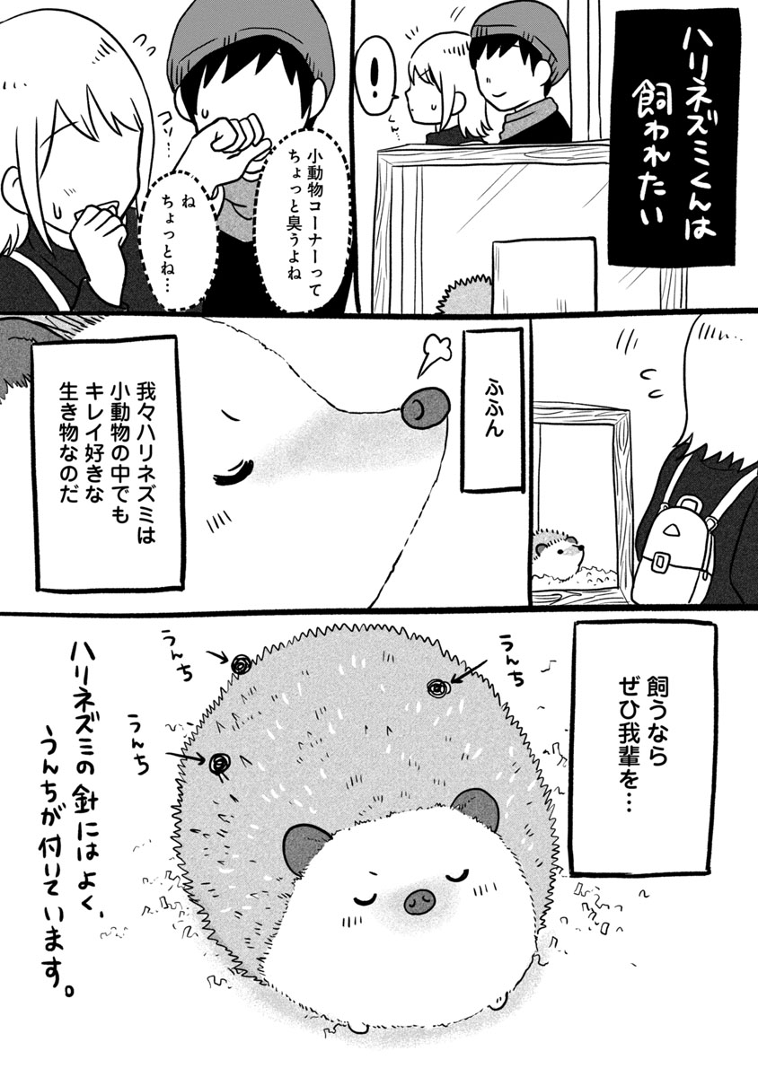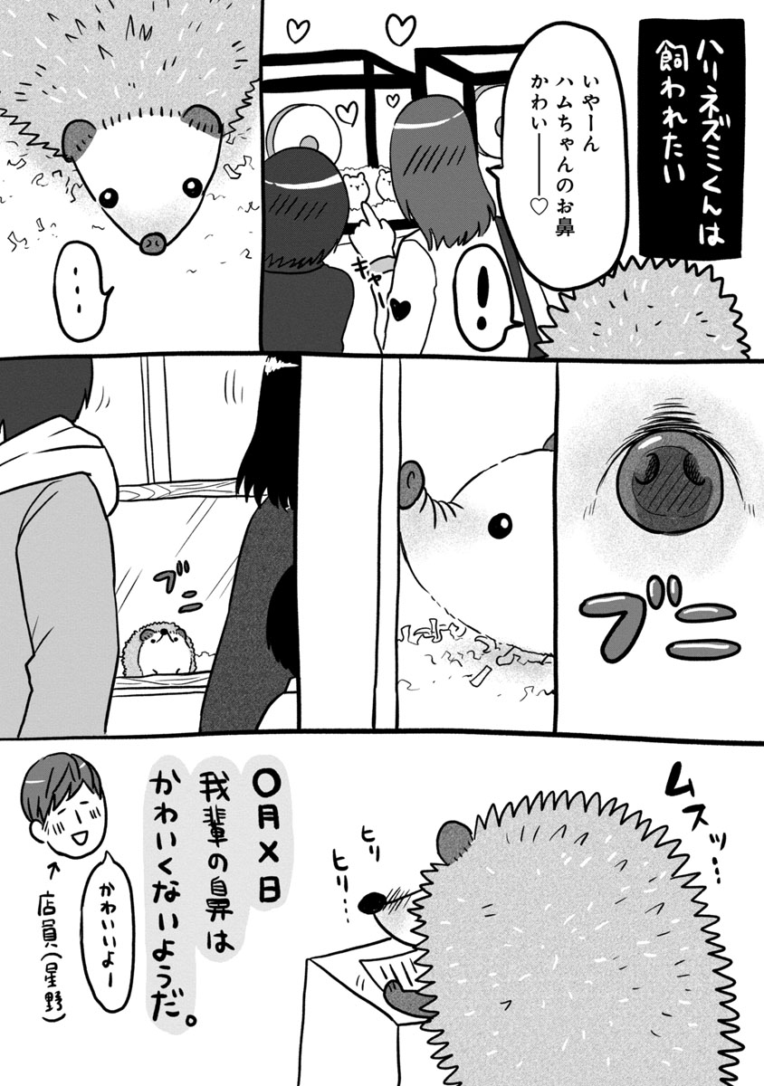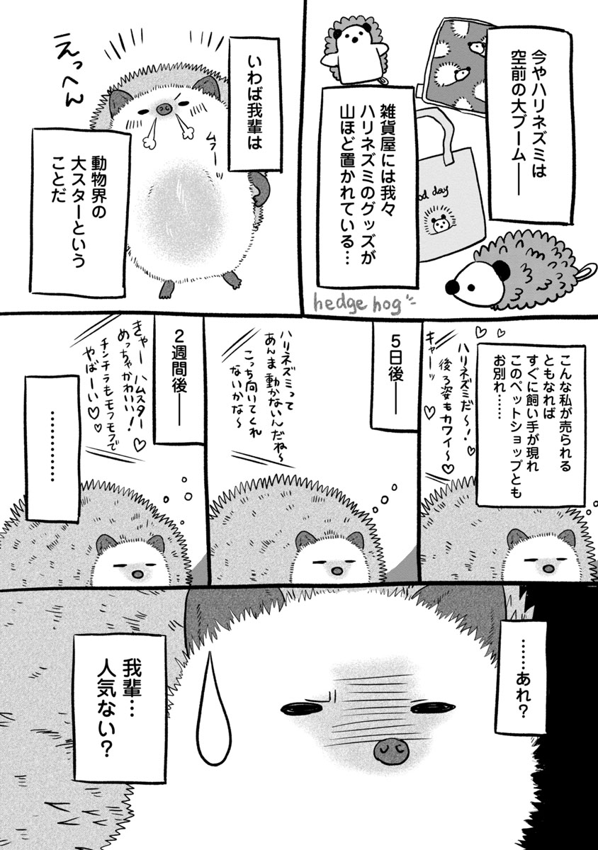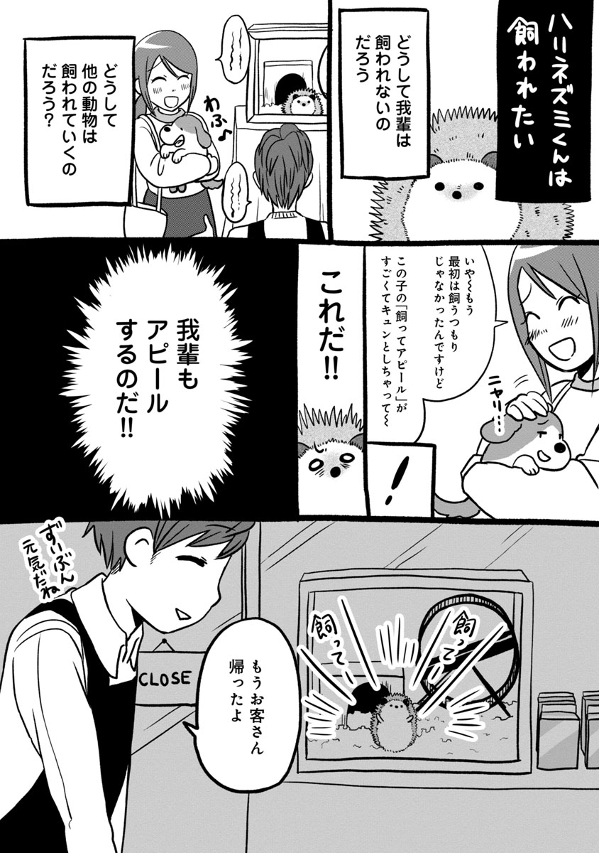 ペットショップの片隅でご主人様との出会いを待つハリネズミくん。 ちくちく可愛いショートコミック!